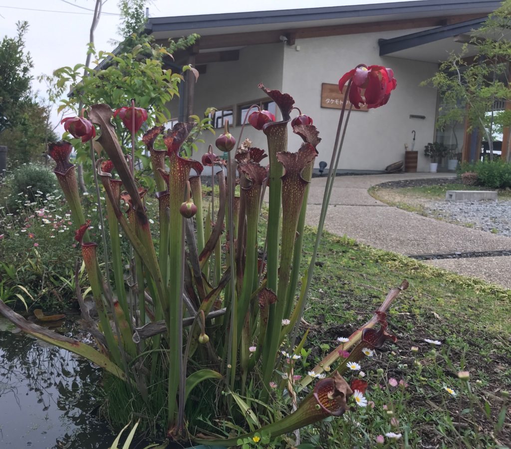 ホームセンターに売られていた食中くんです。環境が合ったようですくすくと大きくなっています。ちゃんと中には虫がぎっしり。サラセニアといいます